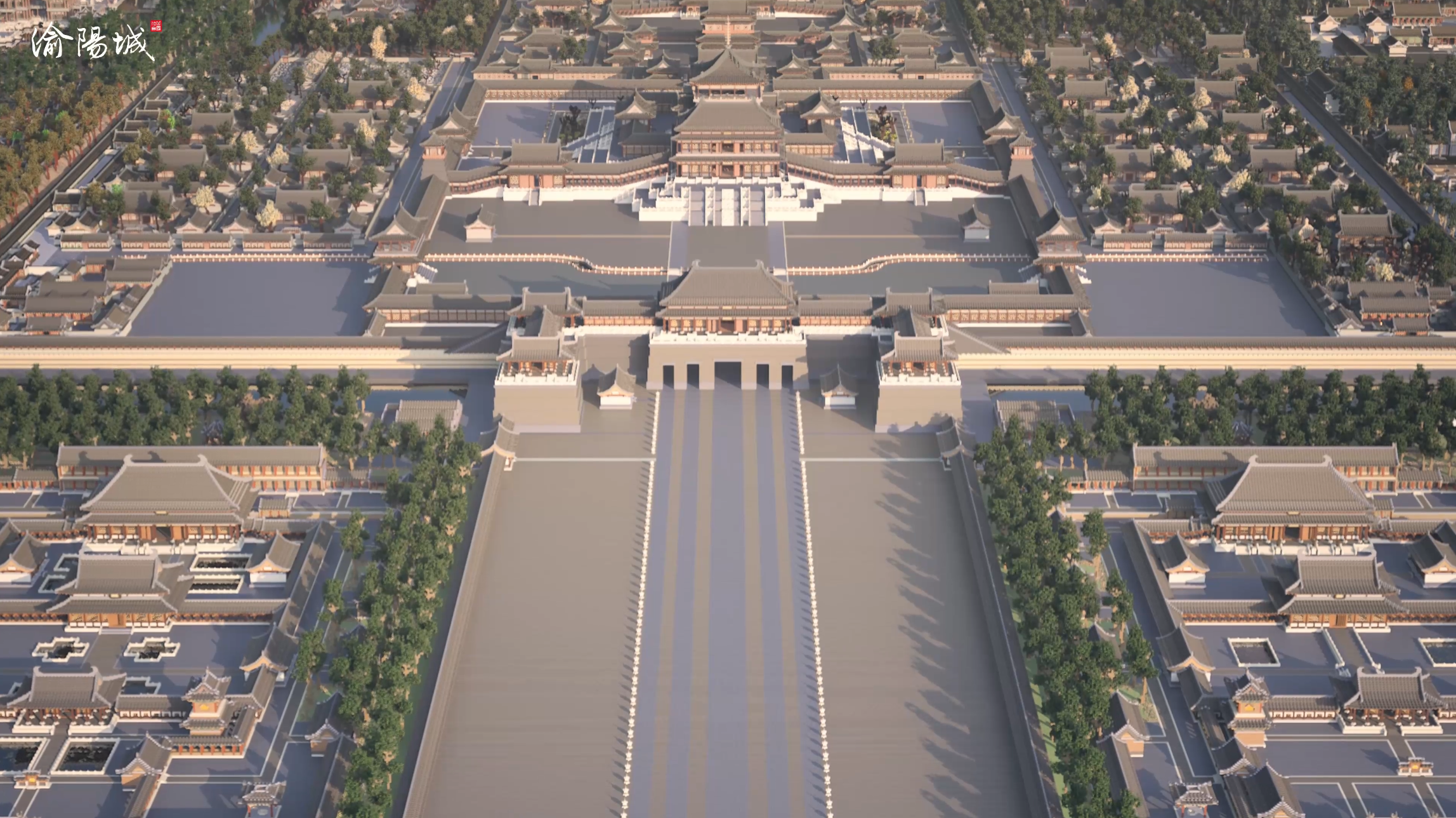 渝阳城是一个规模宏大的多朝代建筑的融合体。根据背景设定,该城从隋末开始营建,一直到清乾隆年间也未曾停工,期间跨越千年时光却未经战火摧残,故聚合了大量具有各朝代特色的建筑。该城分为内外城两部分,南北长约6公里,东西宽约4.5公里,城内实际建筑面积约12平方公里(18000亩)。