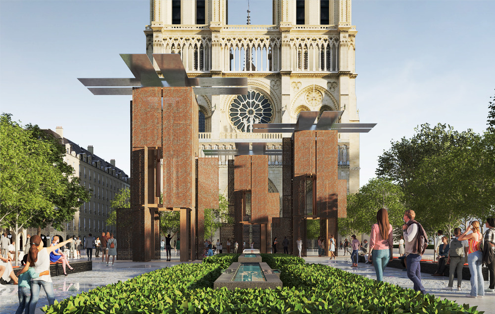 我们的目标是在巴黎密集的结构和地面上创造一个公共城市空间。在圣母院大教堂遗址的伟大历史和建筑旁边,有一个公共聚会的地方,有安静沉思的空间。