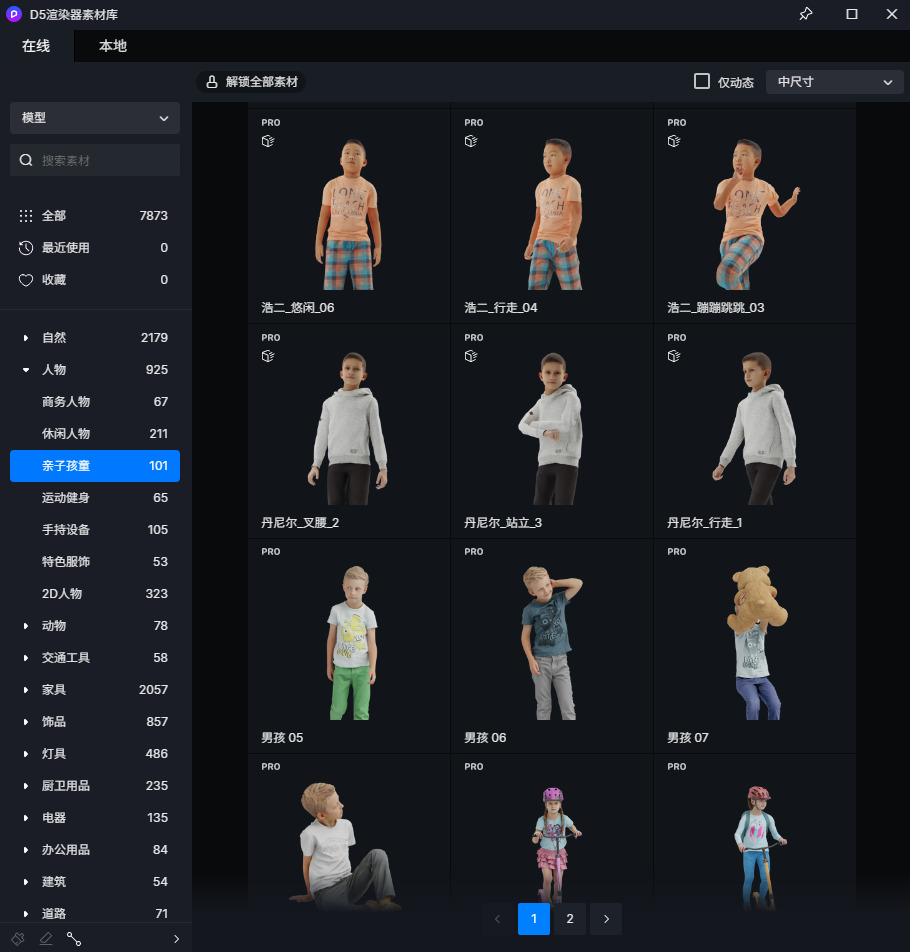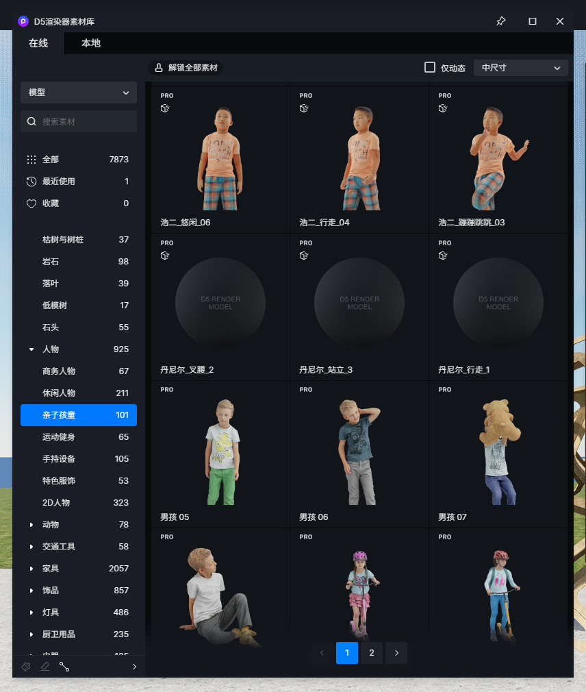 D5素材库为在线素材,受网络状况影响比较大,请检查一下网络状况是否良好(开启 VPN、网络代理或防火墙等设置有可能影响网络稳定性);可以尝试一下重启D5渲染器再打开素材库查看材质/模型是否还有这样的问题。