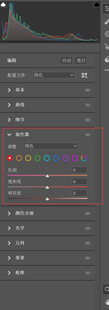 一套基本的并且是完整的调色面板功能上包含以下几点: