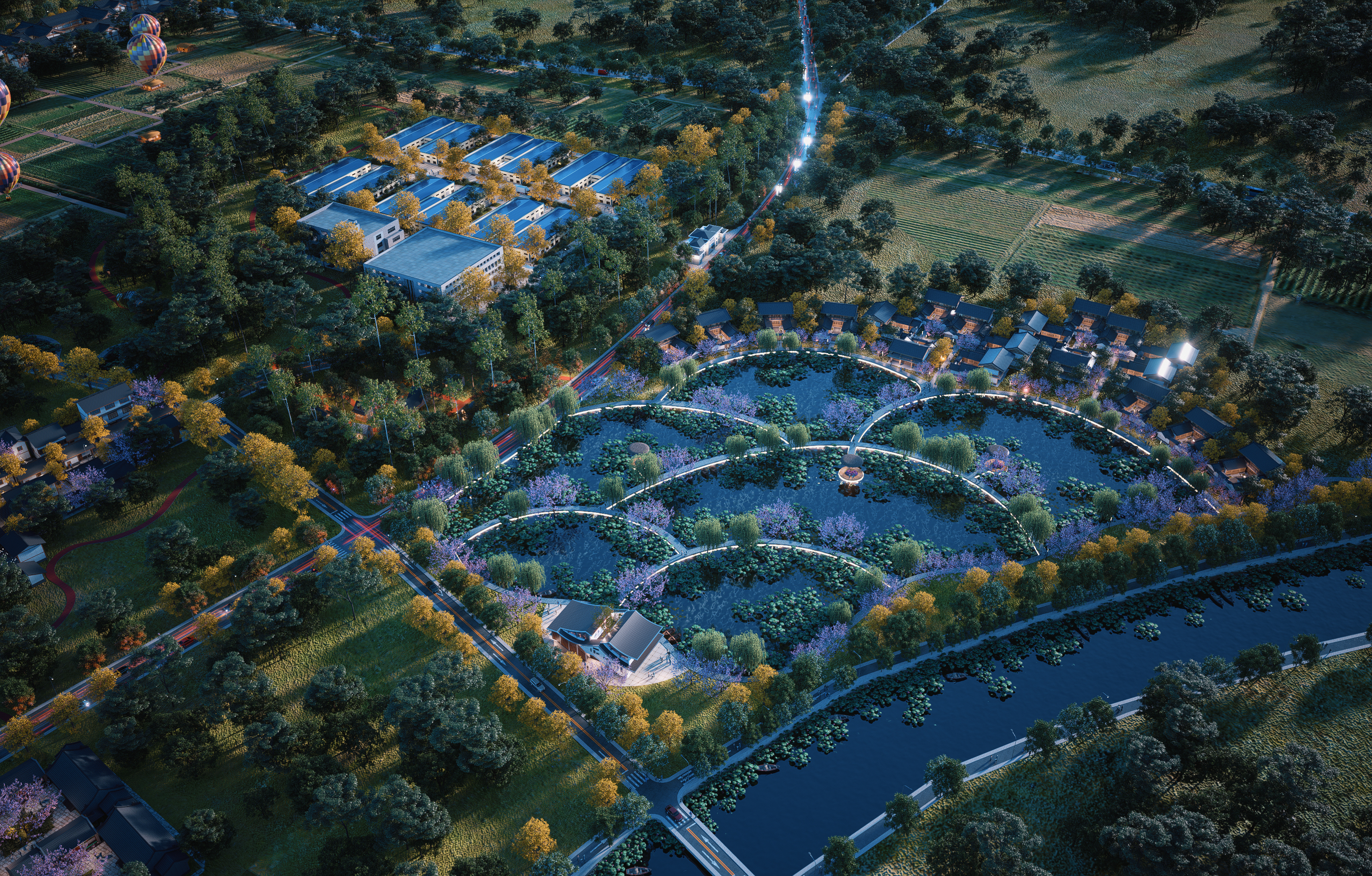 请问灯光和车行道流光都是后期加的吗