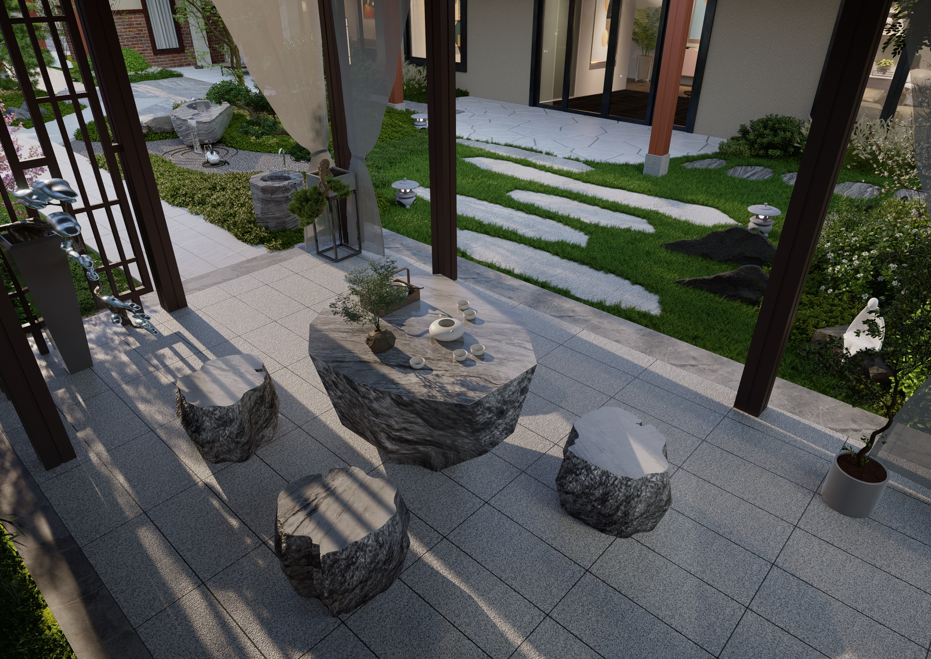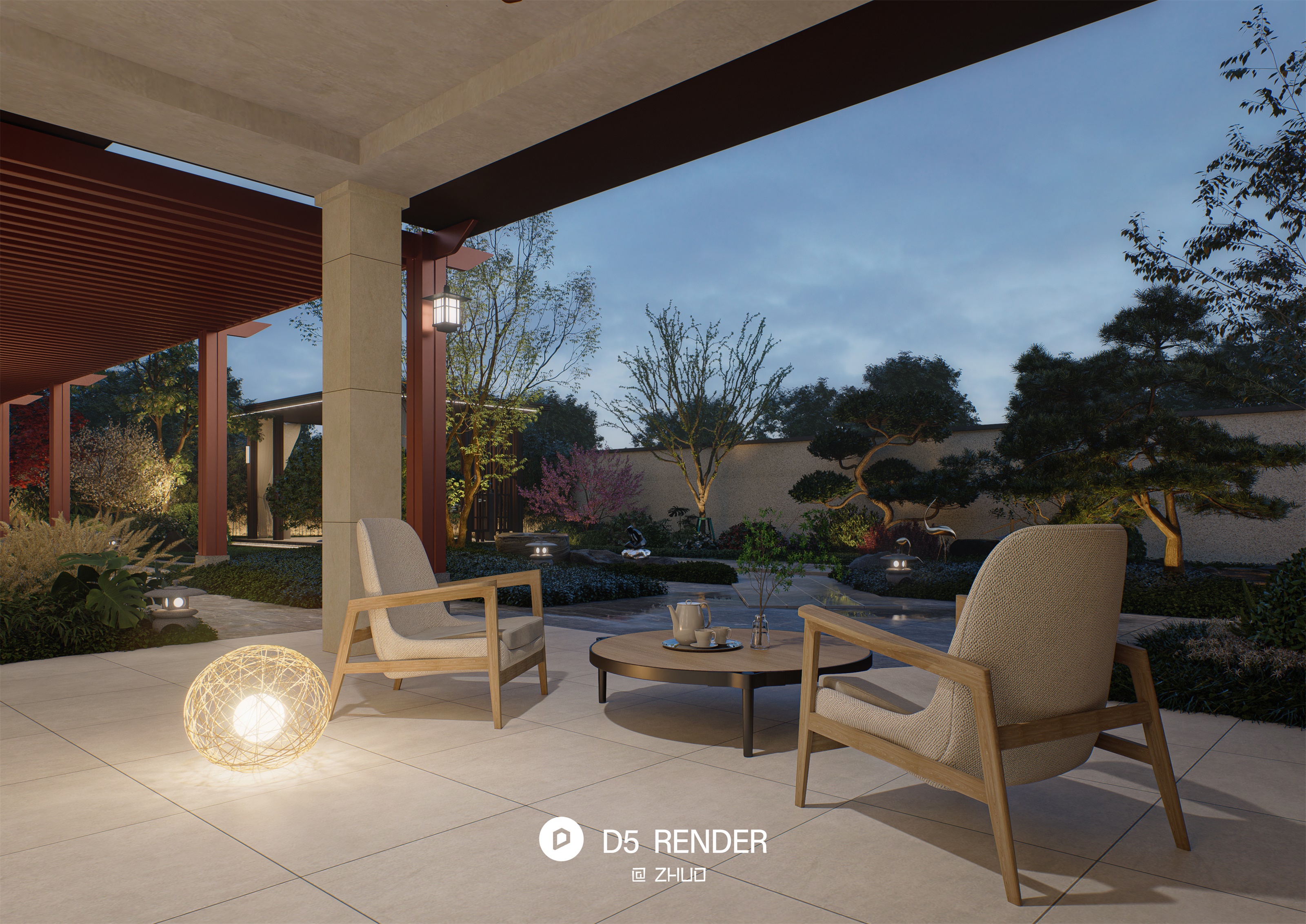 主题:实际项目庭院表现,落地中 制作者:月浊 使用的显卡型号:3080ti 工作流:SU+D5+PS 后期处理简要说明:前两张PS微调,后几张D5直出 模型是否为原创:原创 模型来源:自建