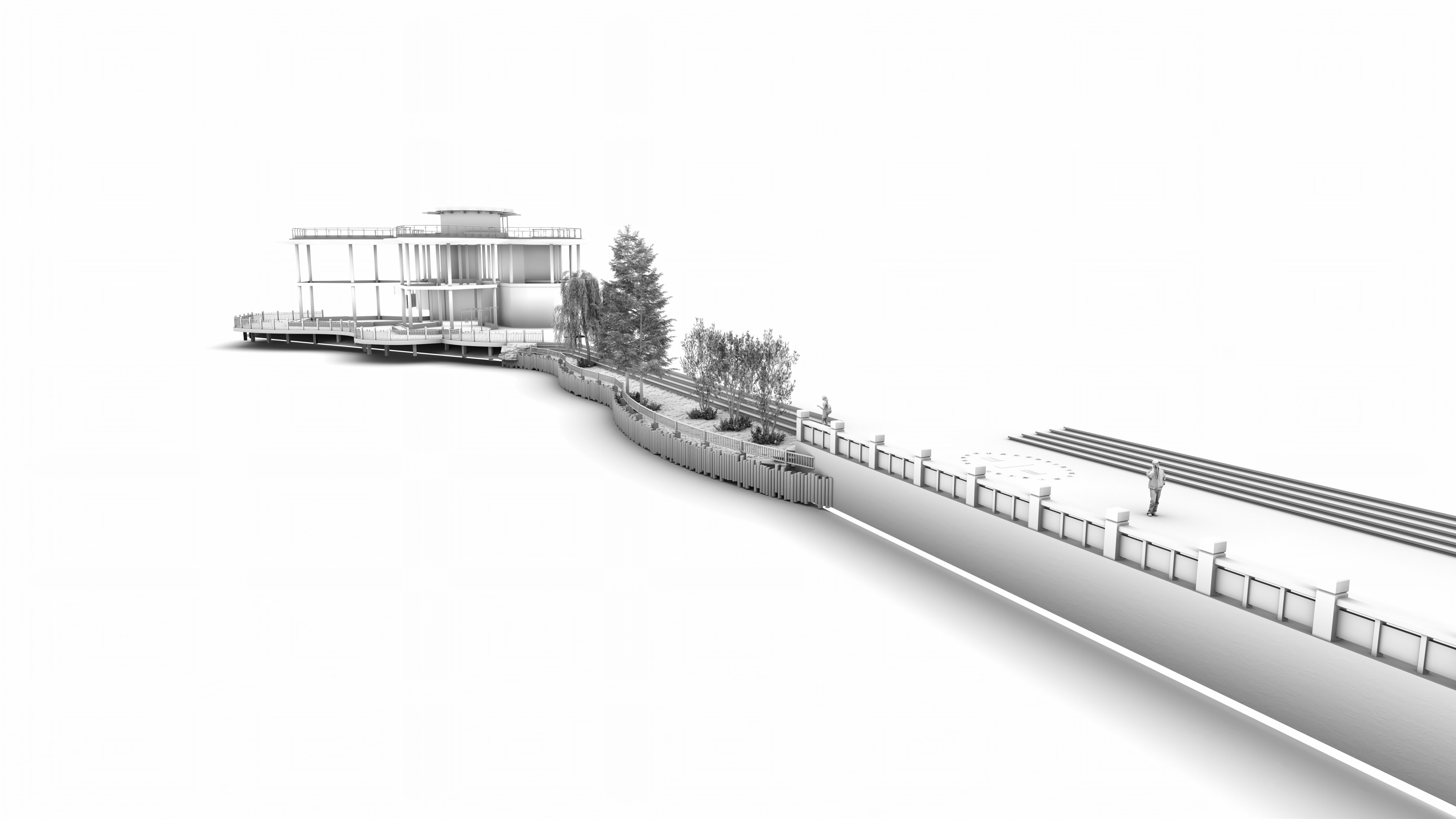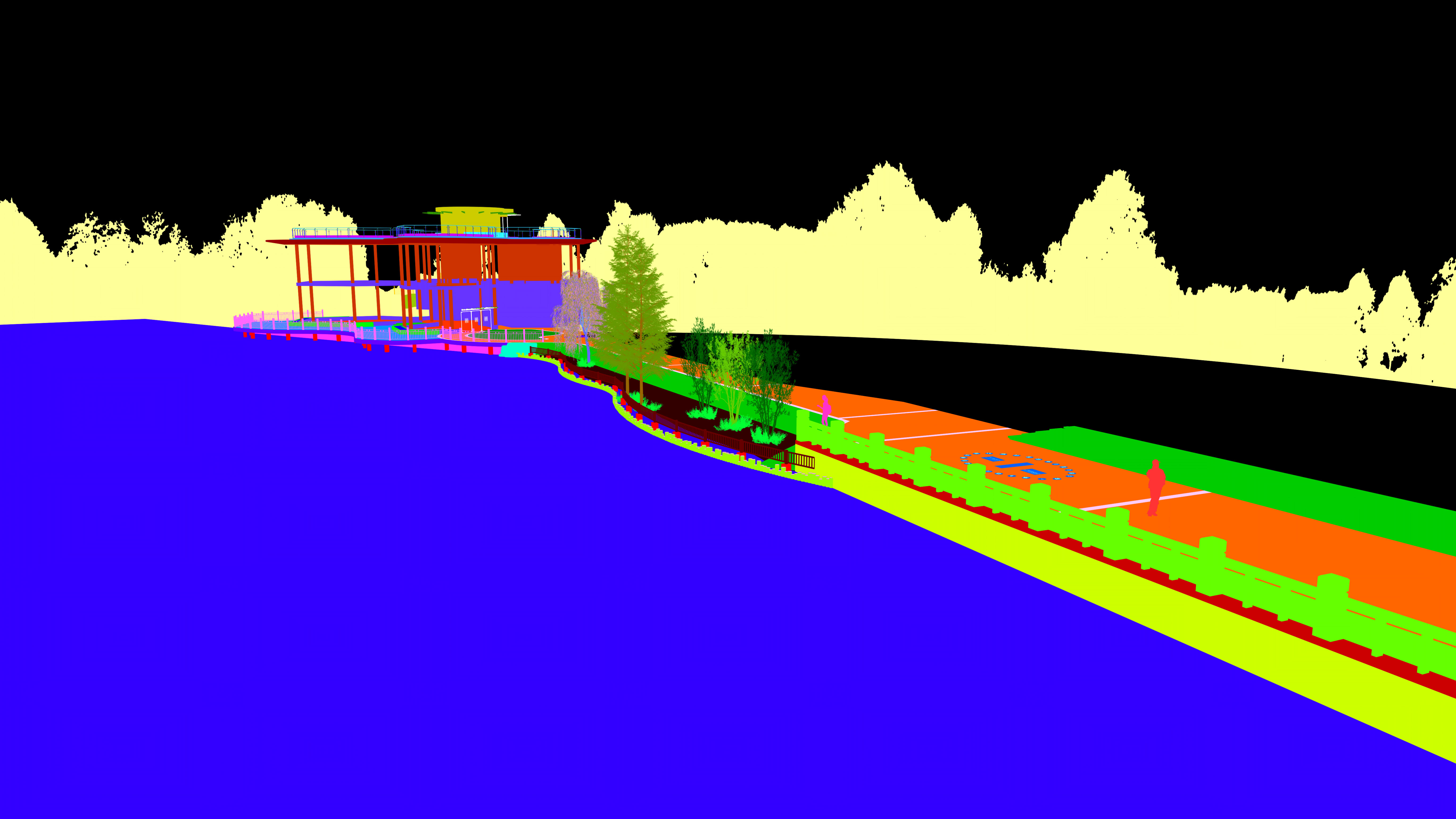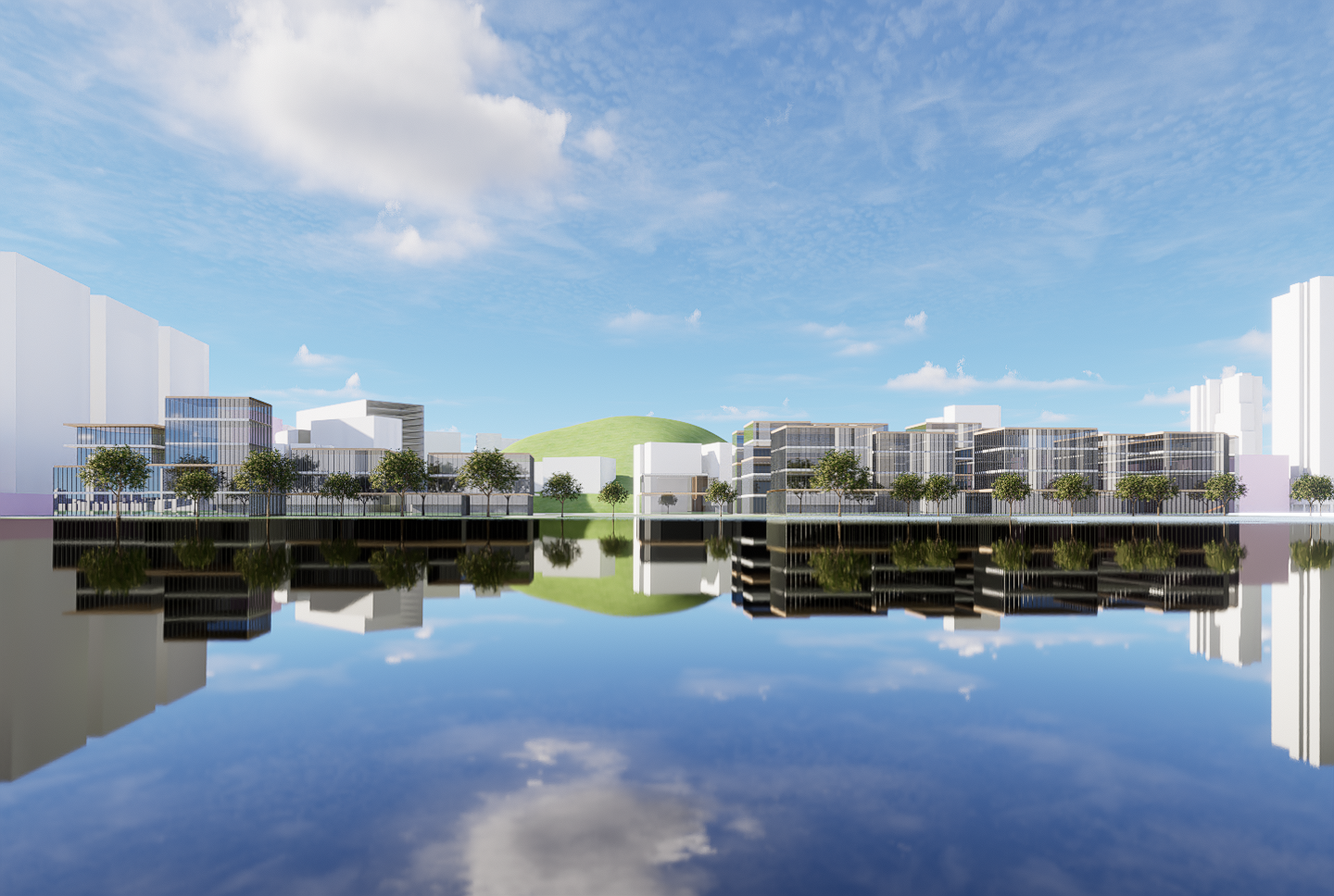 渲染以后,建筑玻璃在水中有投影了,但水中投影的玻璃上没有反射。
