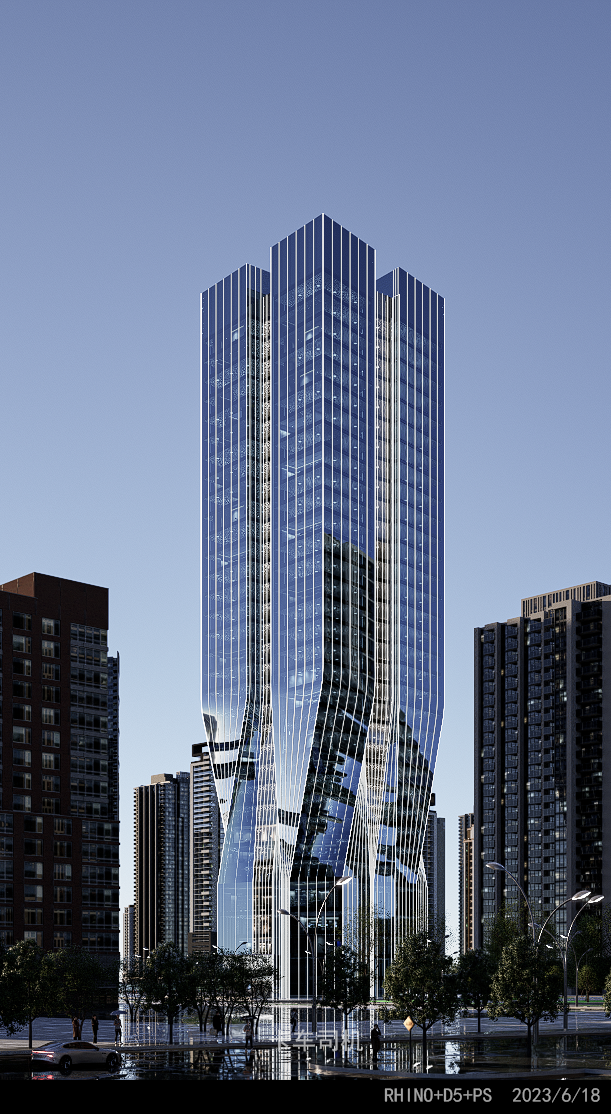 主题:高山流水-建筑高层渲染 制作者:卡车司机 使用的显卡型号:3070火神 工作流:Rhino/SU+D5+PS 后期处理简要说明:ps简单调色 模型是否为原创:是原创模型 模型来源:自建模 作品描述:高层建筑的流线性表达,D5初次尝试(有Lumion/Enscape经验)