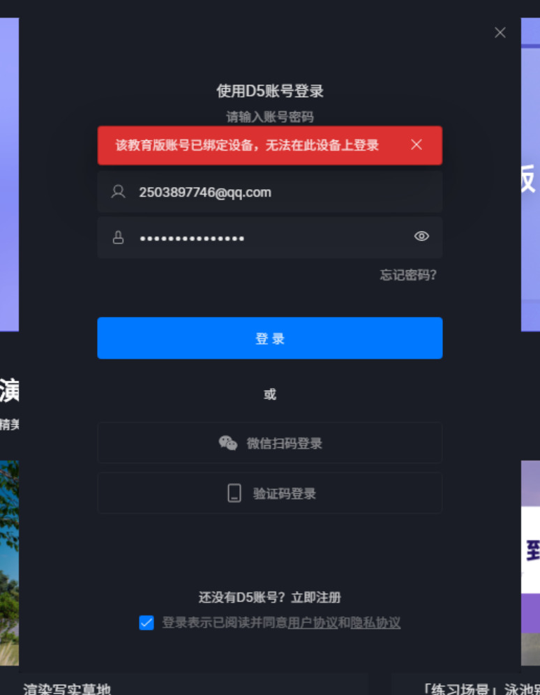 问题现象:2.5版本教育版账号无法登录,提示已绑定设备