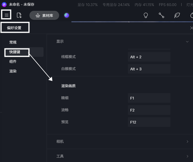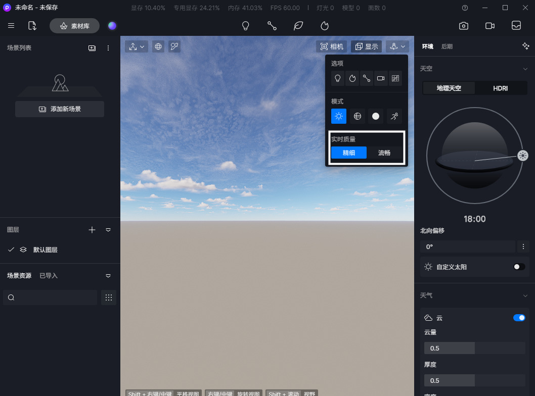 d5里自然光突然消失&预览质量变差——预览画质切换到流畅模式