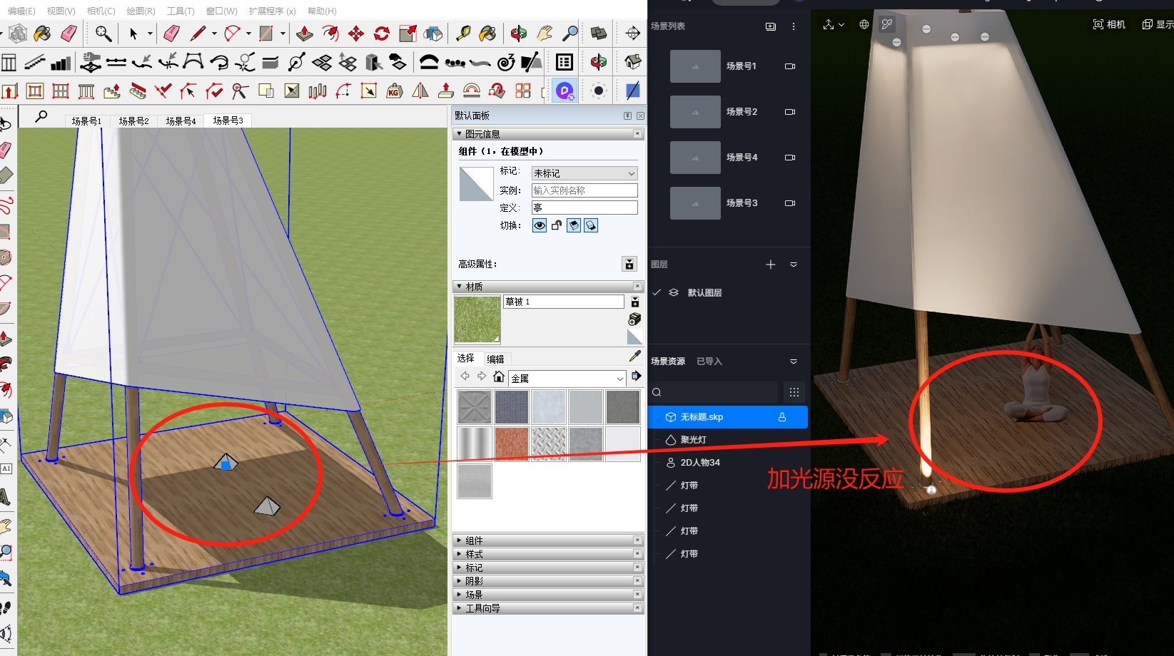 你好 可以试下实时版本su插件(1.2.0.0006版本)是否可正常显示灯光效果(su2020.1以上版本支持su实时插件