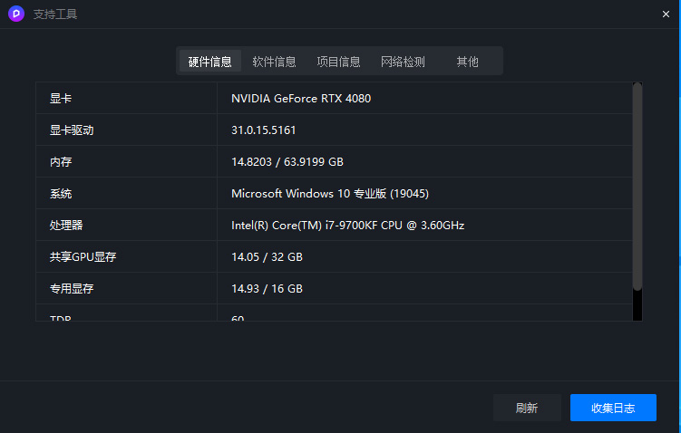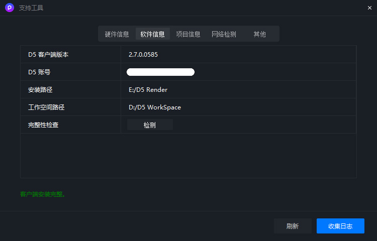 点击收集日志,过会生成的压缩包就是日志文件,可以发我们邮箱看看support@d5techs.com
