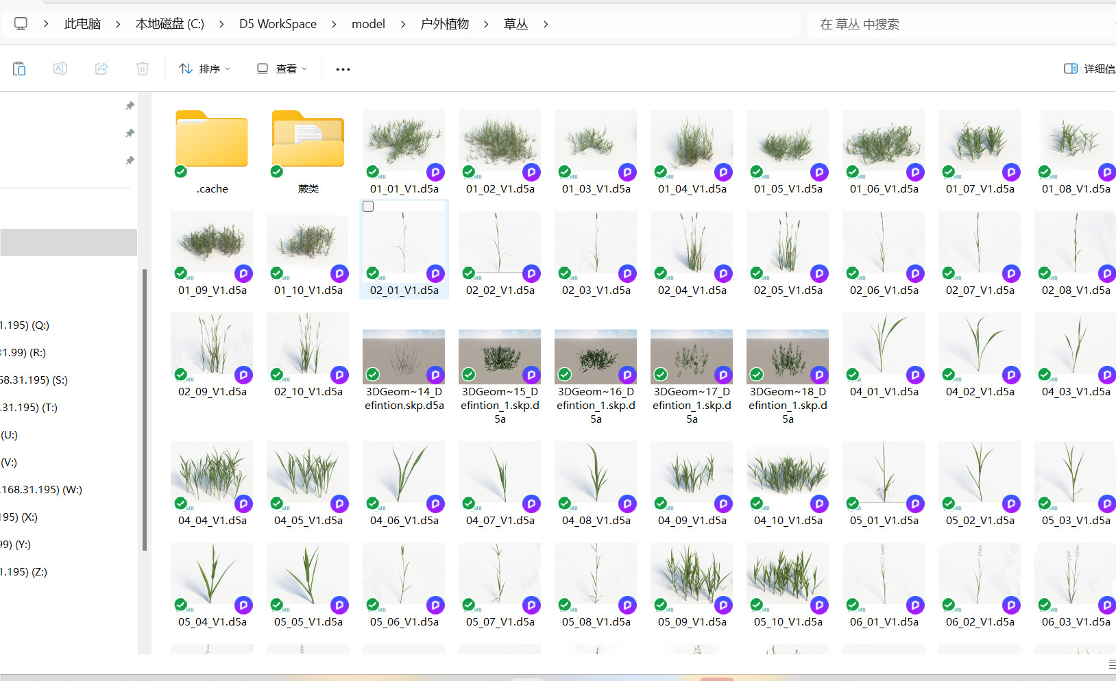 前段时间下了一些D5A模型素材,然后发现里面木有缩略图,就像这样
