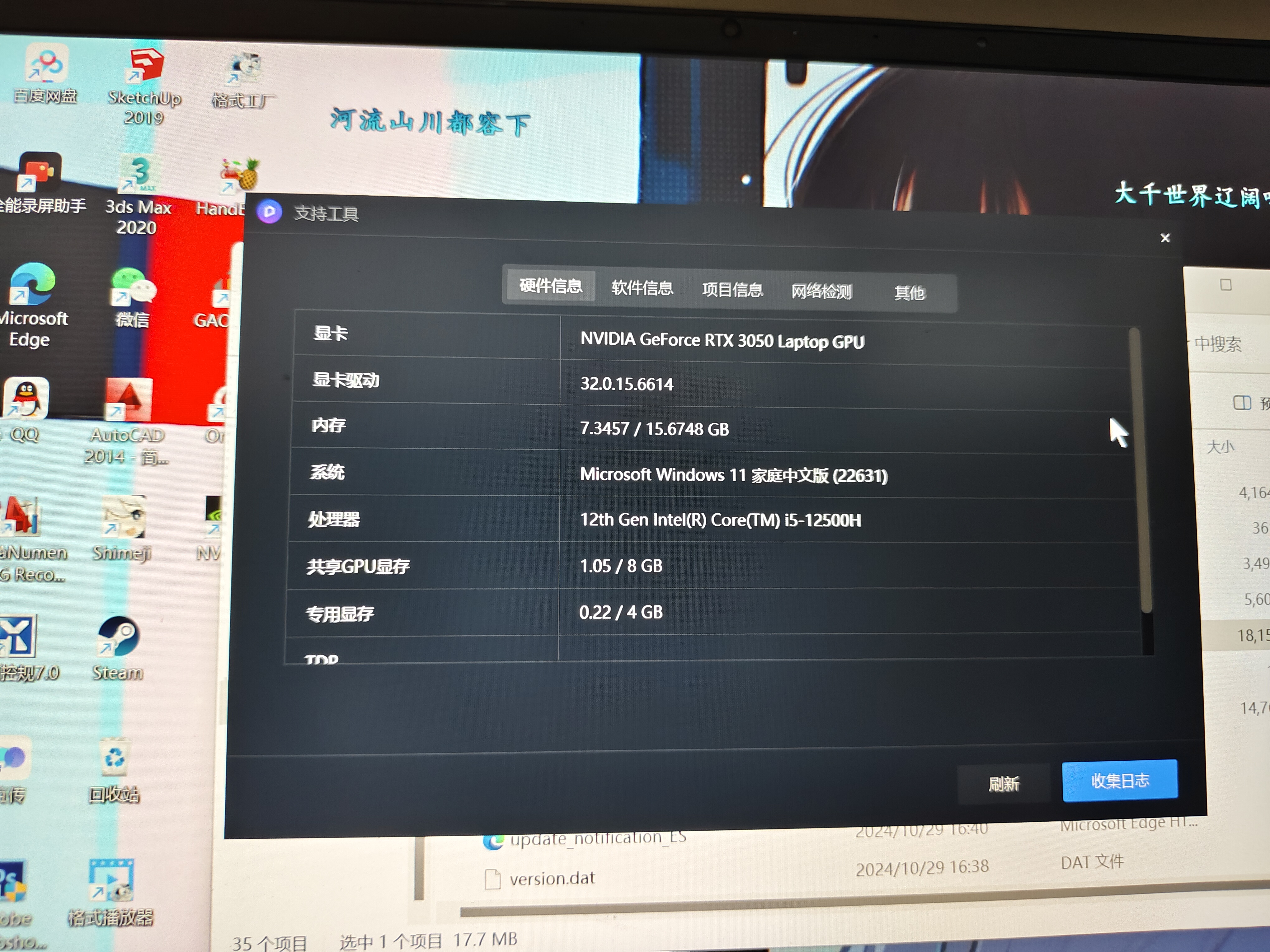 最近做过什么可能相关的硬件或软件变更:第一次下载D5渲染器且为最新版本,安装了程序驱动