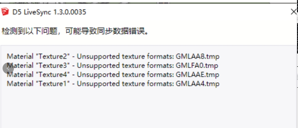 这个是插件提示可能存在的异常材质/不支持的贴图格式,不影响插件的正常同步。