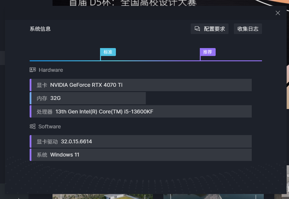 最近做过什么可能相关的硬件或软件变更:比如安装了某个新的应用程序、驱动程序更新、与D5相关的版本更新、系统更新等,如有,说明进行了何种更改