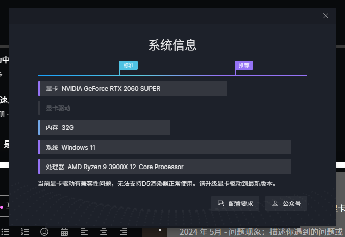 复现问题的步骤:打开d5就跳要更新驱动,去nvida更新之后 还是显示叫我更新,重新启动了 也还是一样