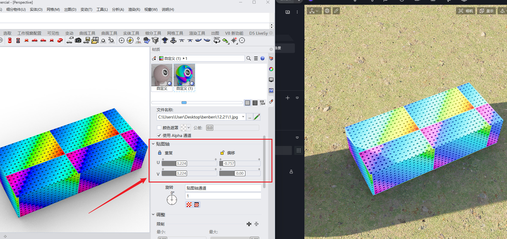 RHINO里用MAPPING CHANNEL 同步过来是没问题的,但在RHINO里就不太方便