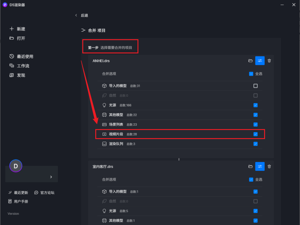 如何使用项目合并组件? | D5渲染器帮助中心