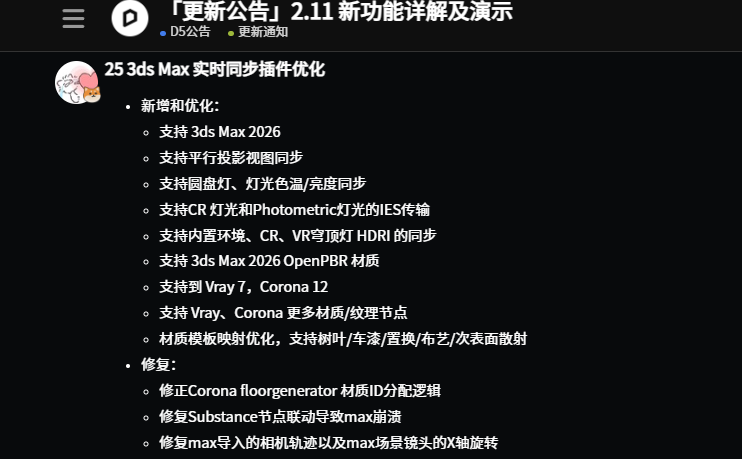 如果max插件也更新到1.3.2了(最近发的新版)可能是由于支持了更多节点(更多的贴图 会通过插件同步到D5中)