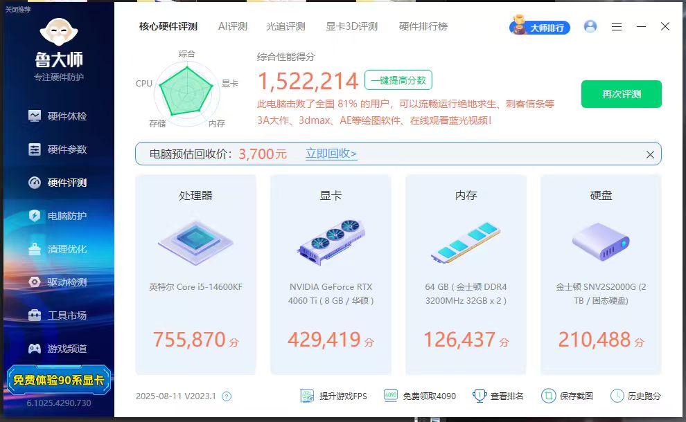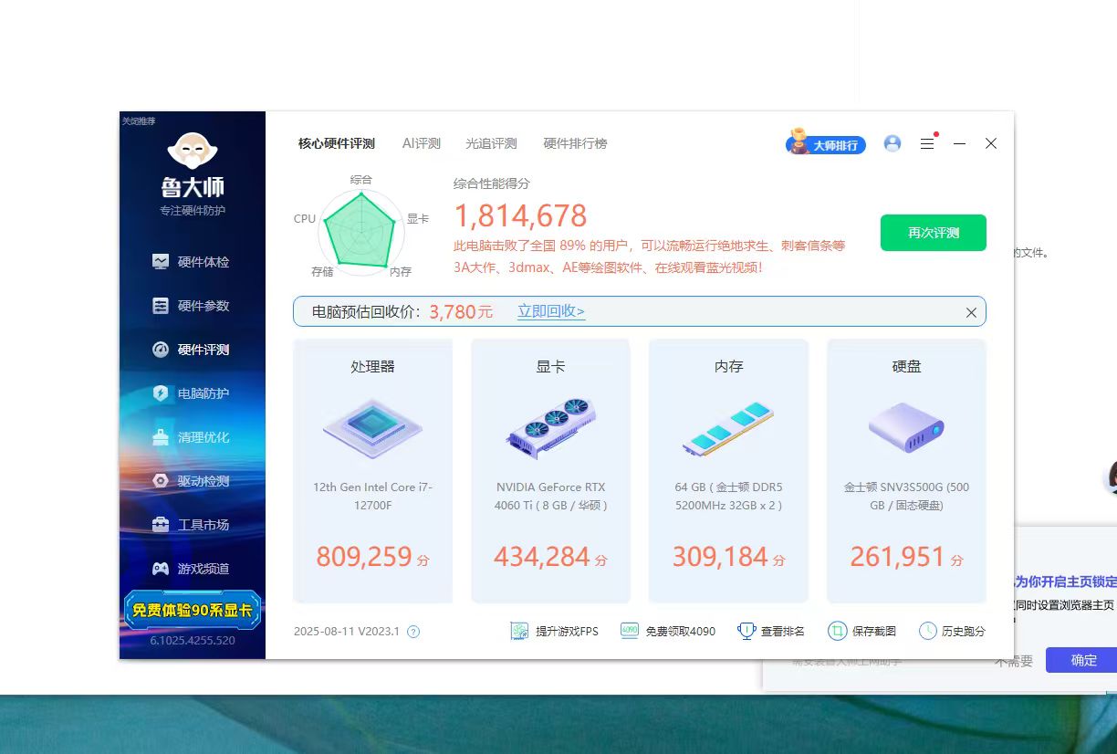 您两台设备都使用如 鲁大师 等硬件检测工具,对 显卡性能 以及 系统硬件 进行检测看下具体数据呢?