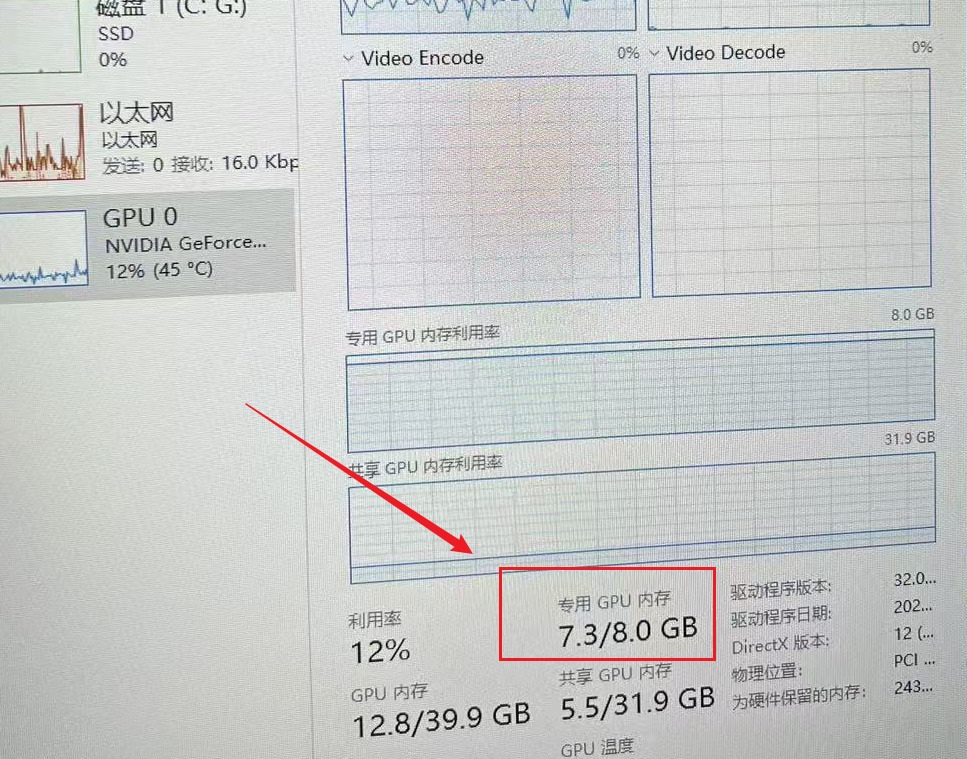 D5在运行时 主要看的是gpu-专用显存 参数,两台设备在渲染时显存占用都是相同的。
