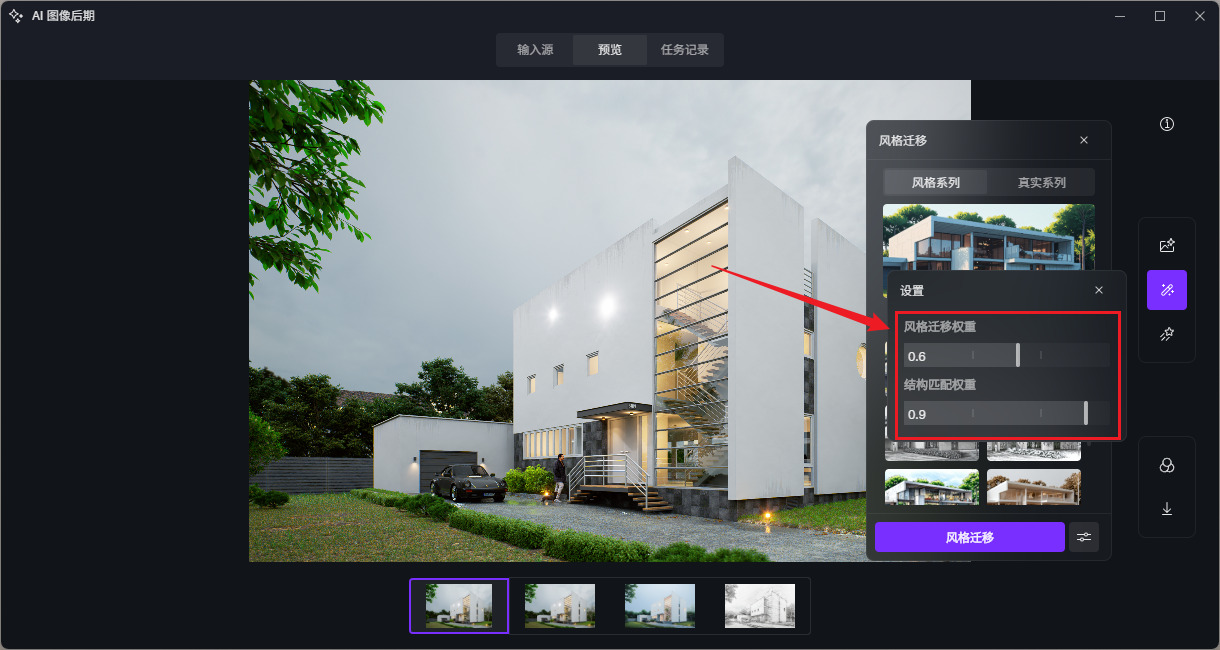 您好,AI风格迁移中可更改迁移权重及结构匹配权重强度,风格迁移权重低&结构匹配权重越高,生成后图像保留的原结构就更加完整: