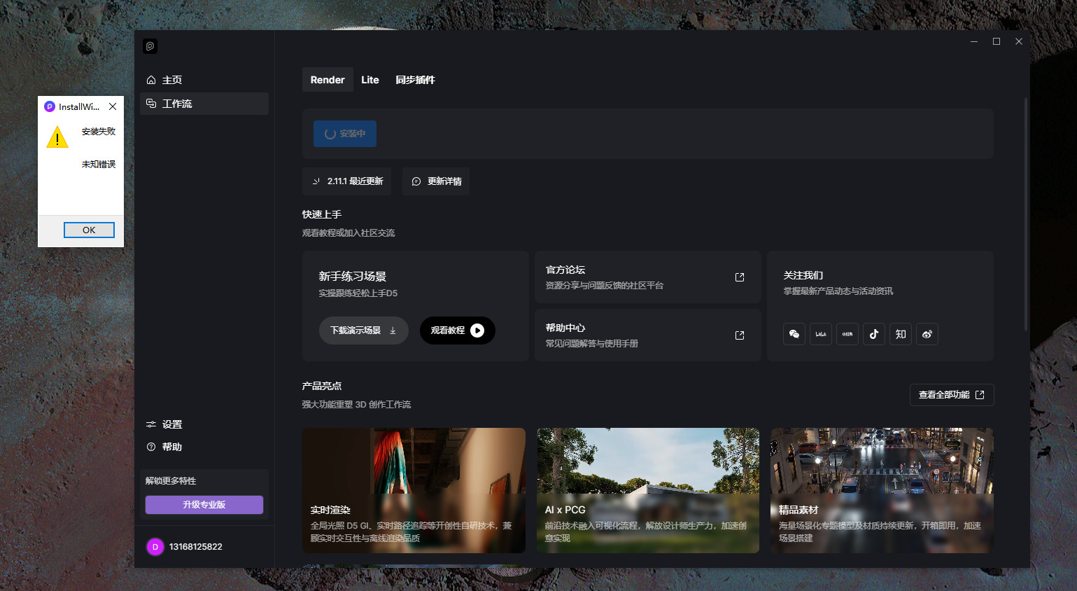 1 个帖子被合并到现有话题中:安装D5Render 安装失败 未知原因
