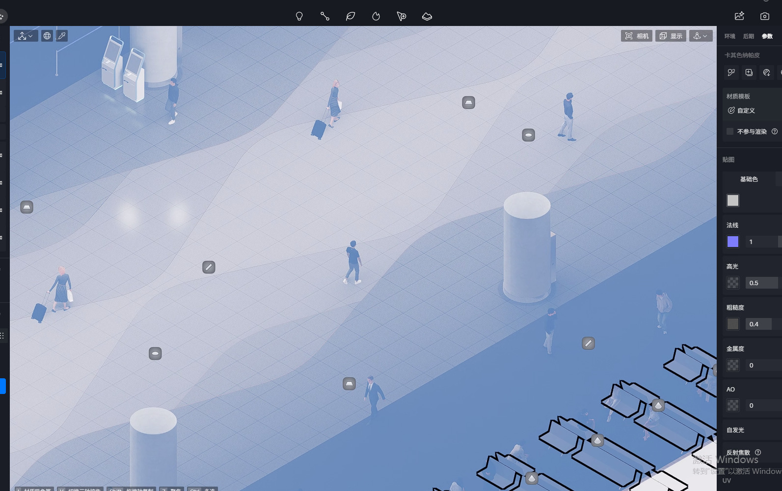 如图,想渲一个纯人工照明的大型公共空间的室内轴测,在D5里做的剖切面。但是出来的图有明显的泛滥