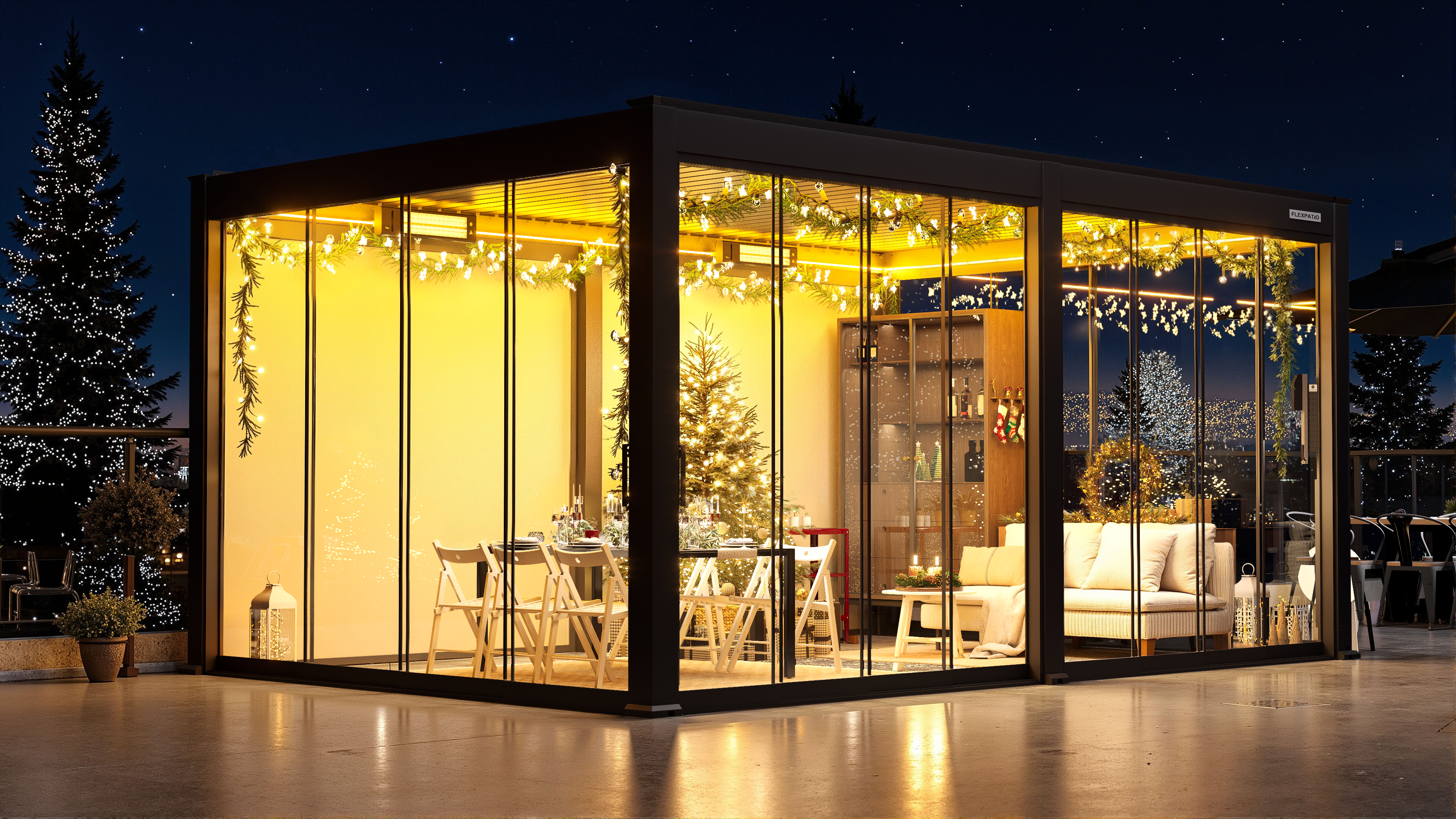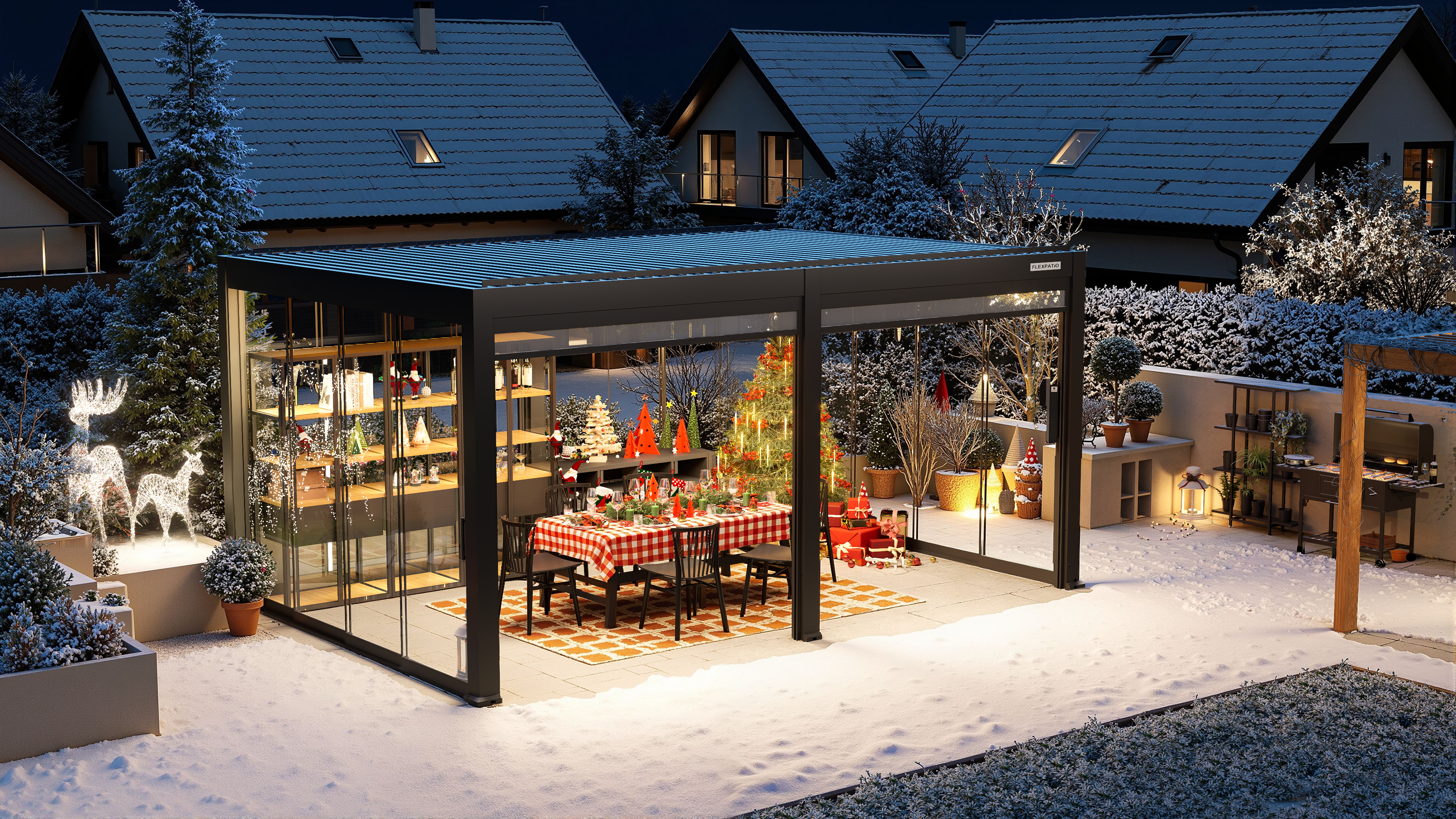 作品描述:独立站现代金属凉棚主图,圣诞节FB广告海报视觉