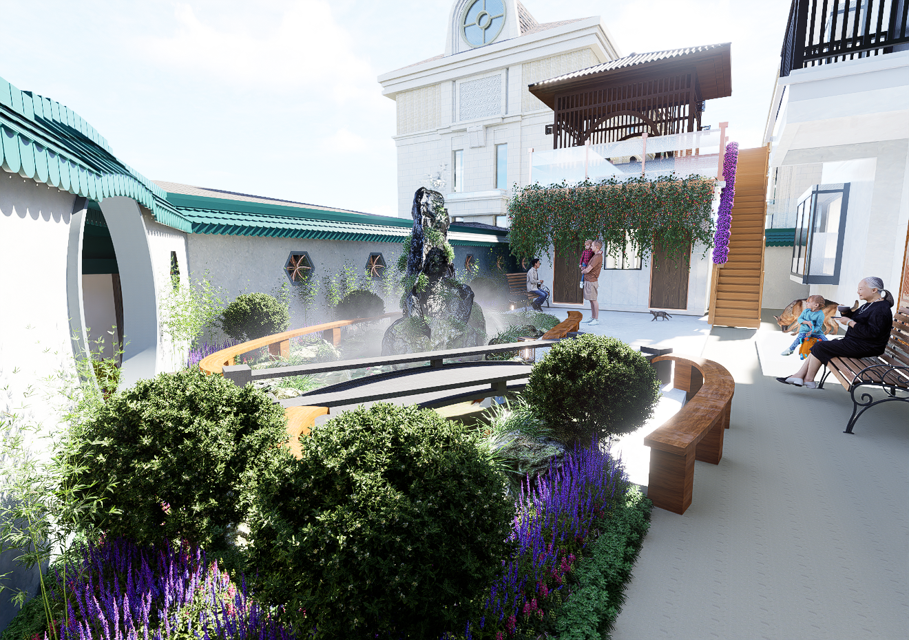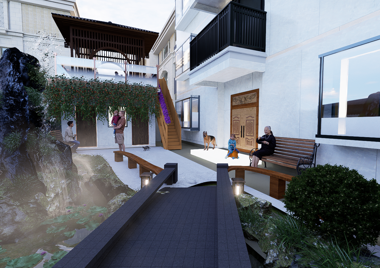作品描述:根据目前城里人追求娴静优雅的民宿要求萌发的创作灵感