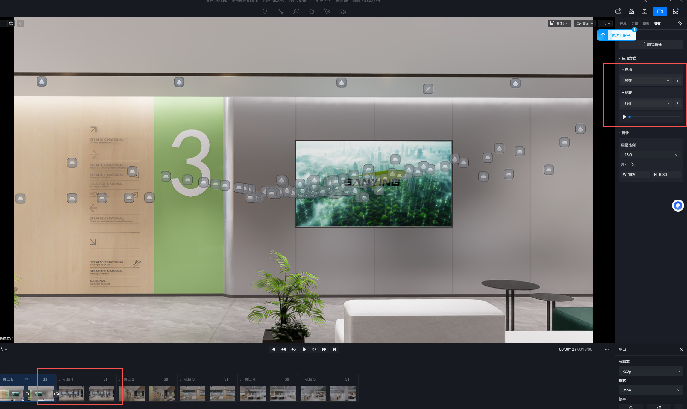 - D5 3.0版本,渲染视频,4K,仅仅将运动方式设置由平滑切换改为线性,渲染视频后,视频在镜头切换的地方会有来回跳帧的问题。