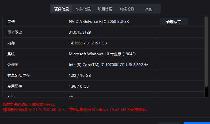 显卡及显卡驱动版本 NVIDIA GeForce RTX 2060 SUPER