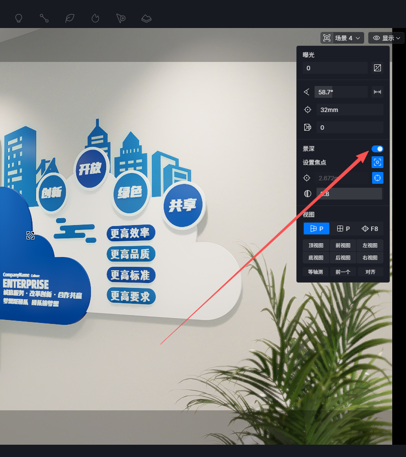 景深设置,如何只指对一个场景,而不是所有场景