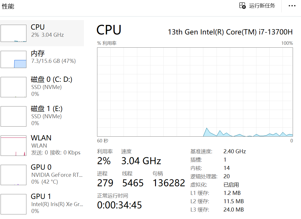 - 任务管理器 → 性能 → 内存&GPU,观察专用显存占用及内存是否接近上限。
