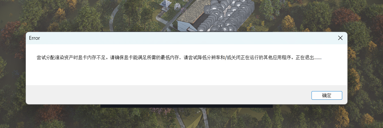 您好,该弹窗报错为系统显存或内存不足的弹窗报错,打开大场景时请先检查显存、内存占用情况,查看是内存还是显存不足引起的报错,对应进行优化,可以通过以下方式查看: