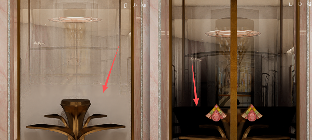 当渐变玻璃材质前方有玻璃或者镜面反射里有渐变玻璃,会出现材质不能正常显示发黑的问题,因为渲染的场景较多,每张都要PS处理还是比较费时的,请问有什么不需要后期处理的解决办法?