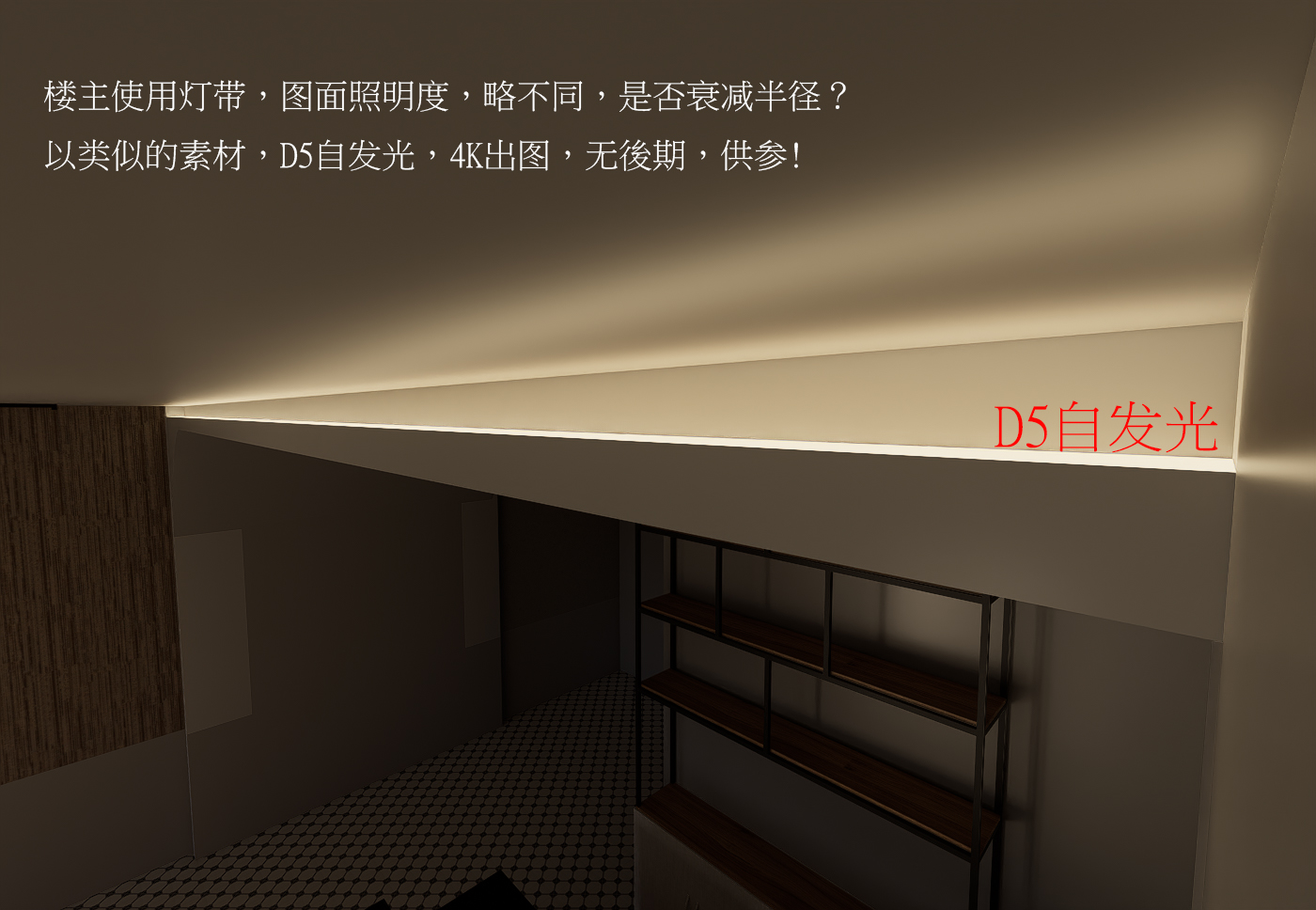 问题现象:渲染的6k大图,灯带的位置会变得不平整,是什么原因