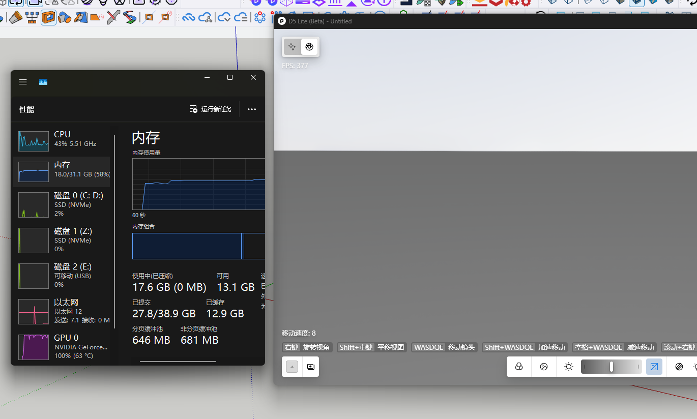麻烦请您打开SU的控制台,触发卡死情况,截图控制台具体报错内容,再到D5启动里收集一个日志给我们,收集完日志后,请您再清洁方式重装一个最新显卡驱动再试下。(以下链接为清洁方式安装驱动教程)
