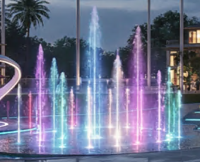 求助D5里这种 喷泉彩灯应该怎么做出来呢 或 是怎么打的灯光呢