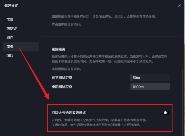 菜单—偏好设置—渲染–旧版大气兼容模式