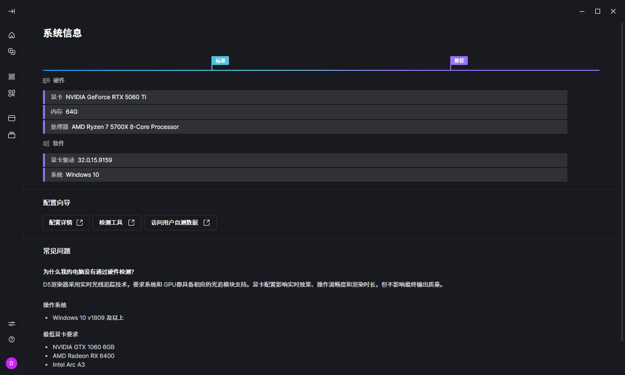 最近做过什么可能相关的硬件或软件变更:比如安装了某个新的应用程序、驱动程序更新、与D5相关的版本更新、系统更新等,如有,说明进行了何种更改