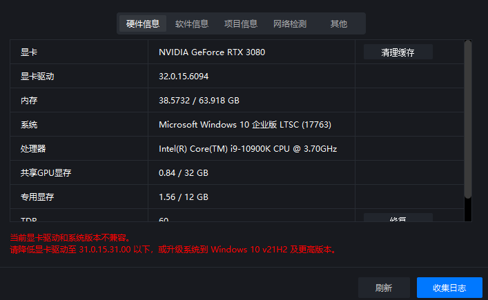 显卡及显卡驱动版本:RTX 3080 驱动32.0.15.6094